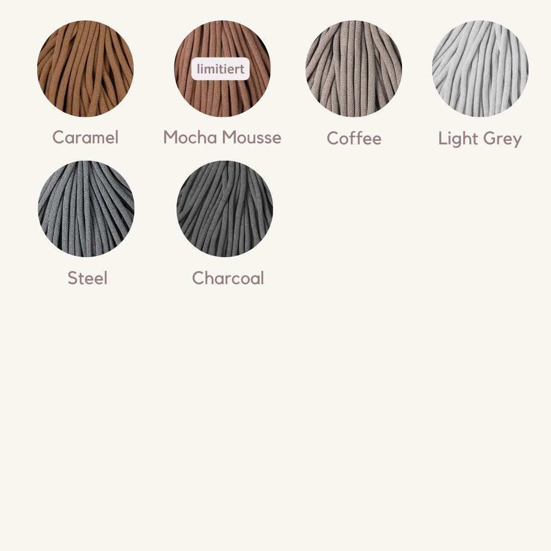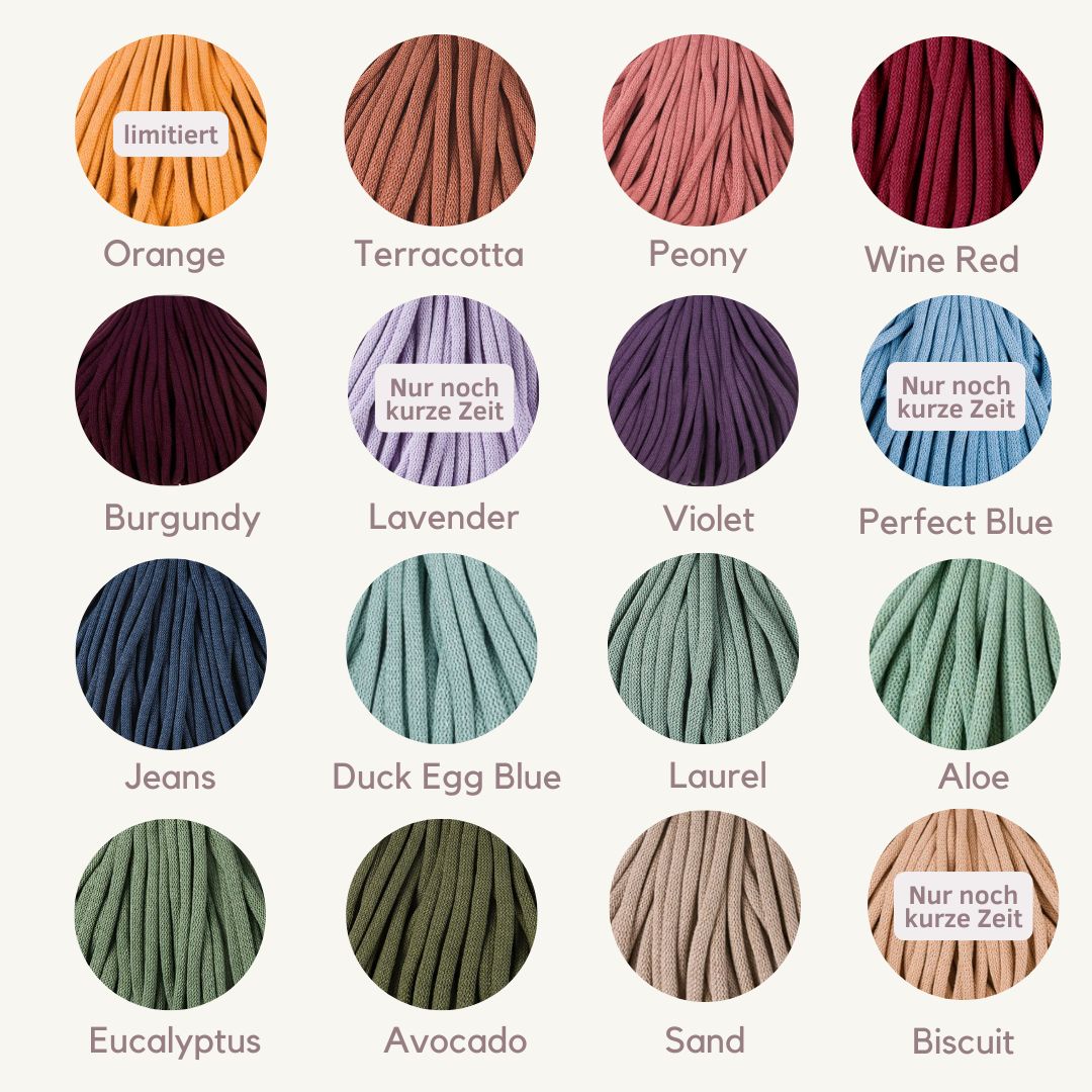 Die Jumbo Flechtkordel 9 mm von Bobbiny besteht aus recycelter Baumwolle mit Polyesterkern und ist das Dickerchen in der Bobbiny-Familie. Es ist 9mm breit, flexibel und fühlt sich dank der einzigartigen Flechtart extrem weich und geschmeidig an. Perfekt geeignet für besondere Häkel- und Strickarbeiten im "Chunky Knit"-Stil und XXL-Format, wie Körbe, Teppiche, Taschen oder Poufs oder als Hingucker für Nähwerke. Die dicken Kordeln von Bobbiny sind in den schönsten Farben erhältlich und werten jede Handarbeit auf.