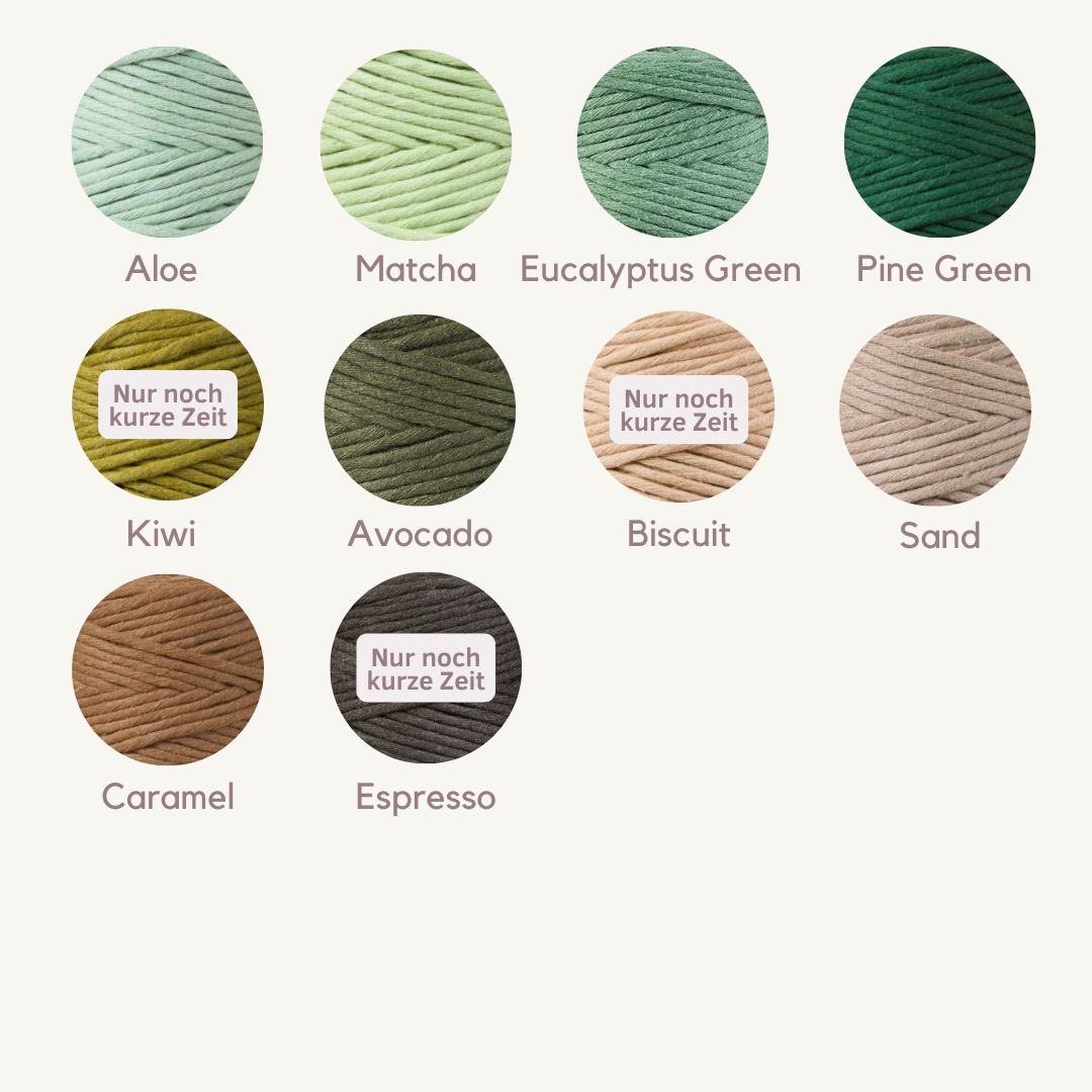 Die Premium Makramee-Kordel 3mm von Bobbiny aus 100% recycelter Baumwolle ist perfekt für Makramees, Webereien und jegliche Faserkunst geeignet. Die Baumwollkordel, 1-fach gedreht aus 56 Garnfäden, ist außergewöhnlich weich und dick zugleich, wodurch die Makramee-Knoten perfekt zur Geltung kommen. Beim Kämmen entstehen dichte Quasten.